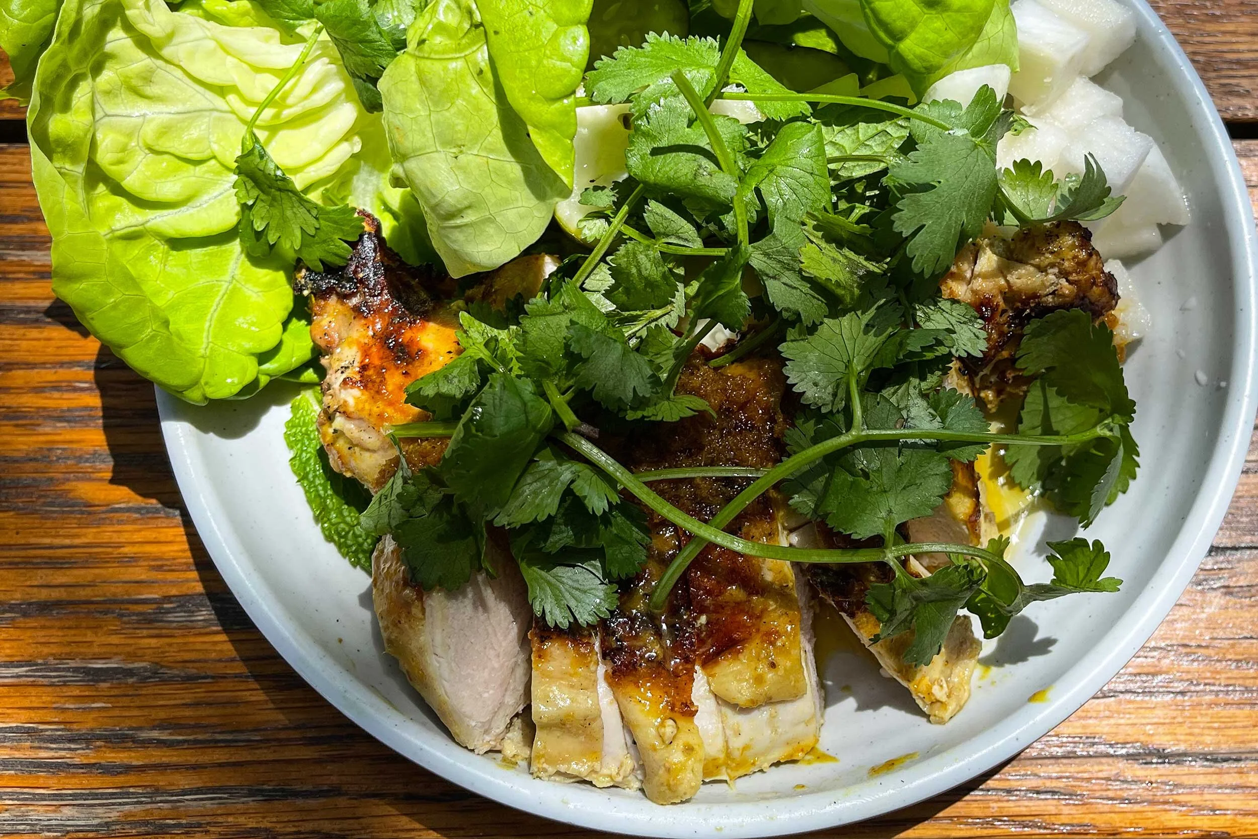 The Malaysian chicken bo ssam was my main entrée and this was a dish to behold on its own. It had a yellow curry yuzu vinaigrette sauce that coated the chicken perfectly. It was accompanied by pickles and a lettuce leaf that you are supposed to eat as a wrap.